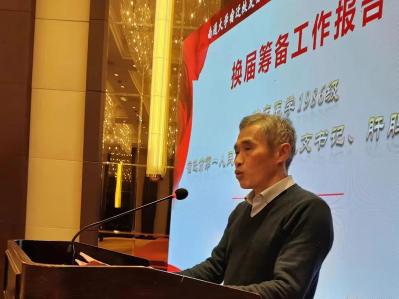 會上,社會資源處副處長、校友會副秘書長張效東宣讀了校友總會關(guān)于同意宿遷校友會換屆的批復。臨床醫(yī)學1986級校友、宿遷市第一人民醫(yī)院外科黨總支書記、肝膽胰外科主任胡建平作籌備工作報告。